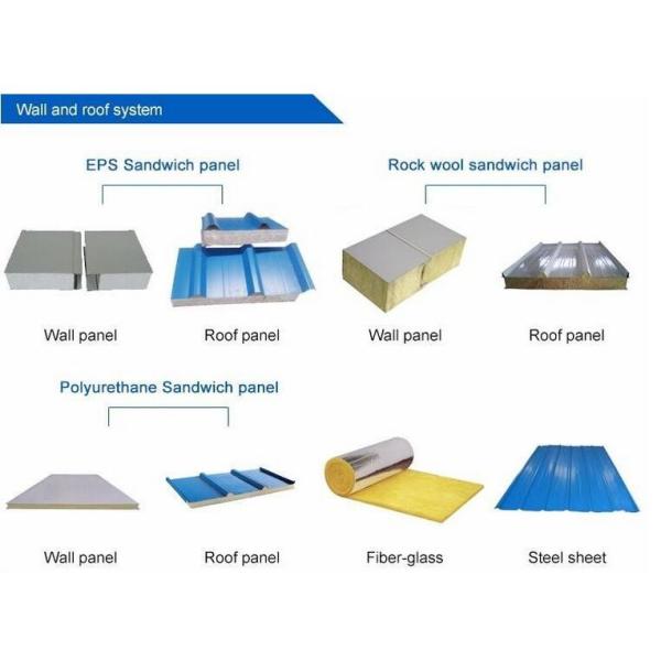 | Wall & roof | EPS sandwich panel, Mineral wool sandwich panel, PU sandwich panel and corrugated steel sheet | |||